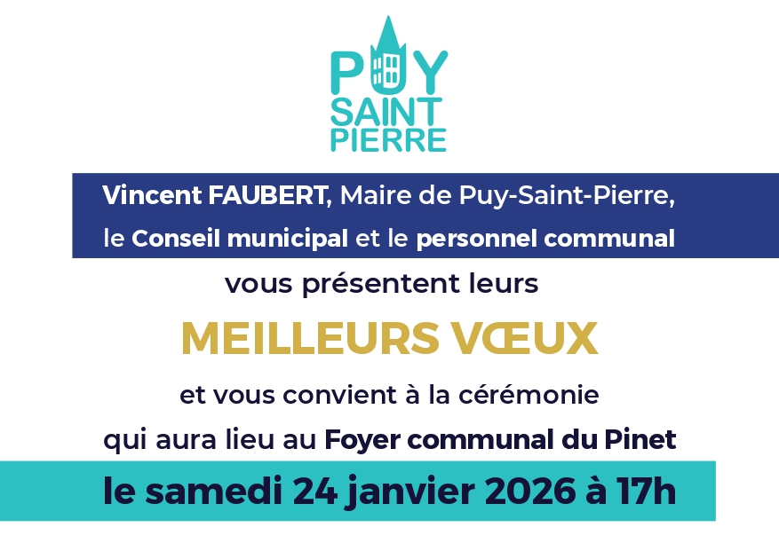 et de vous inviter à la cérémonie des vœux Samedi 24 janvier 2026 à 17h au foyer du Pinet