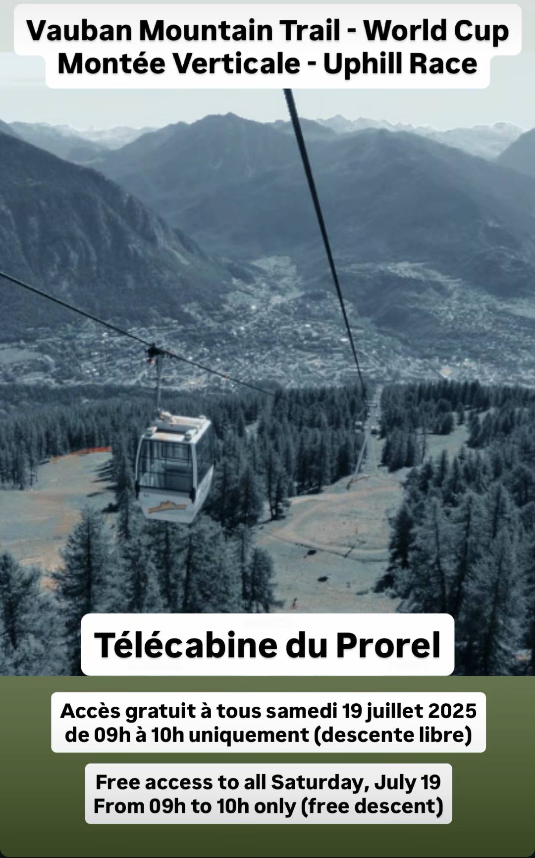 Accès gratuit au Télécabine du Prorel de 9h à 10h le samedi 19 juillet pour la montée, avec une descente libre toute la journée.